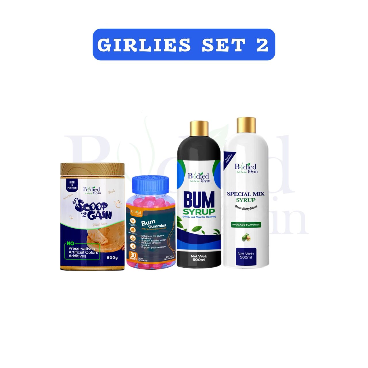 A complete glow-up set for ladies who want to gain weight all over and grow their bum, hips & thighs.